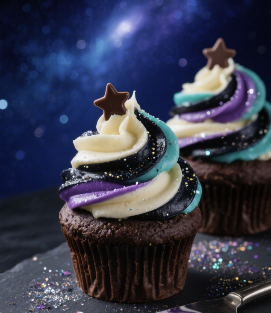 2. Galaxy Swirl Cupcakes With Cosmic Chocolate Stars