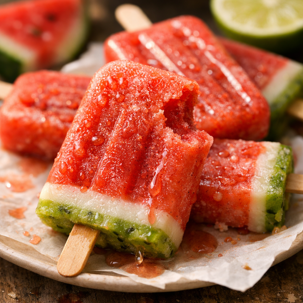 These are amazing as-is, but a few mint leaves blended in make them extra cooling. You can also swap lime for lemon or add a handful of strawberries for a ruby-red color boost. Pro move for parties: stand the pops in a tray of crushed ice with a lime wedge on the side.