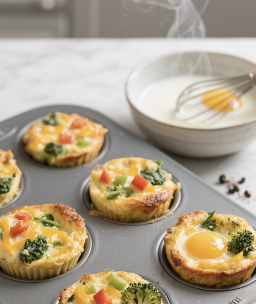 Serve with toast, fruit, or tuck one into a warm tortilla for a mini breakfast taco. Swap cheeses (feta! pepper jack!) and veggies by mood. To freeze, cool completely, wrap individually, and reheat in the microwave for 30–45 seconds. Add a splash of hot sauce for grown-ups who “test” one on the way out the door.