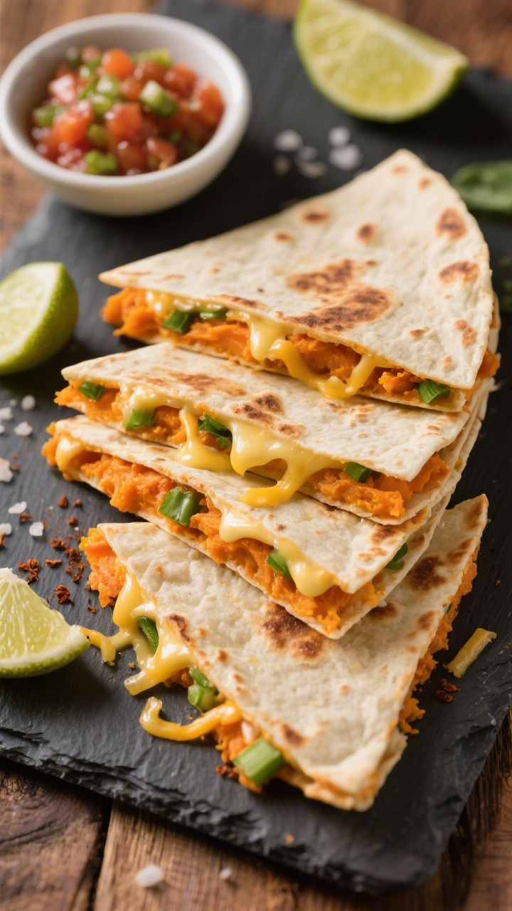 - Slice quesadillas into thin wedges or strips for dipping.