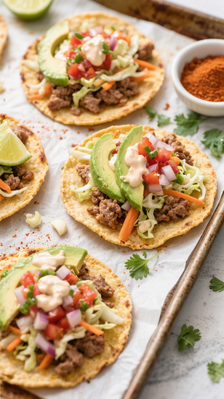- Top each tostada with spoonfuls of taco meat and cheese; return to oven 2–3 minutes to melt.
