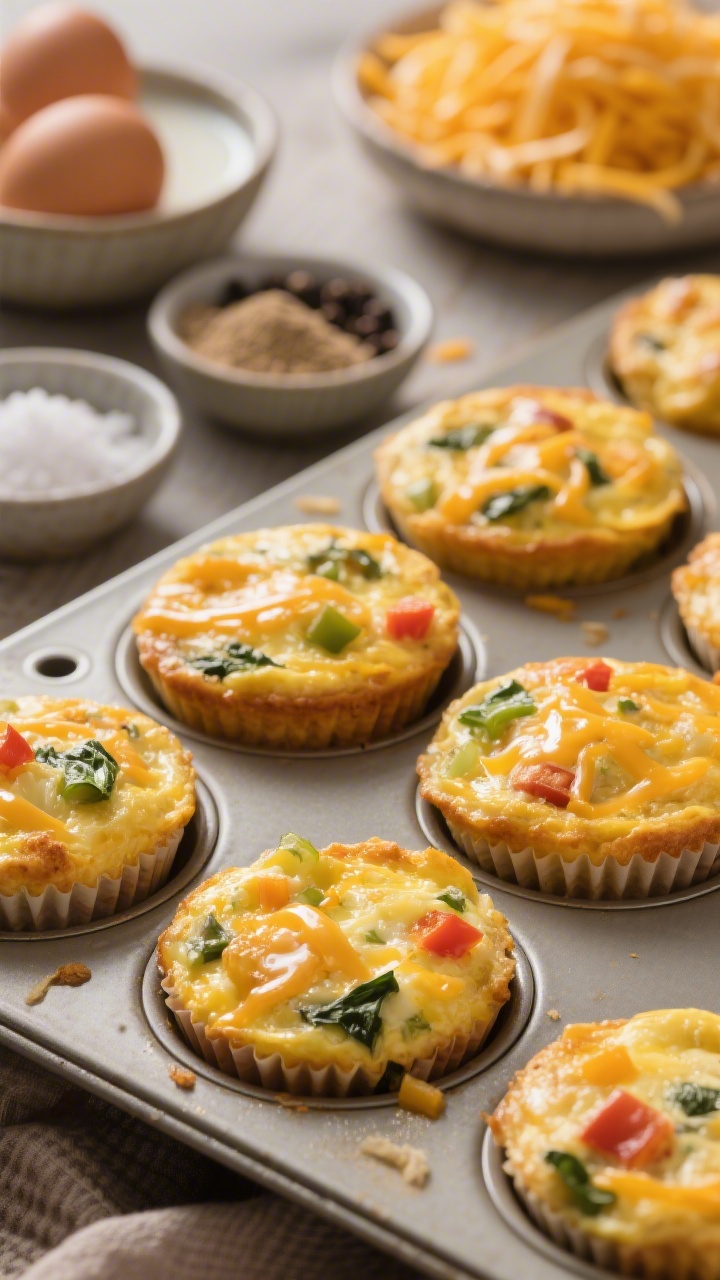 Serve with fruit and a small dip of ketchup or salsa if your kid’s adventurous. Freeze extras in a zip bag and reheat in 20-second bursts. Add tiny pasta shapes or cooked quinoa to the batter for texture, or swap cheese for cottage cheese for extra creaminess. They’re tiny, mighty, and meal-prep friendly.