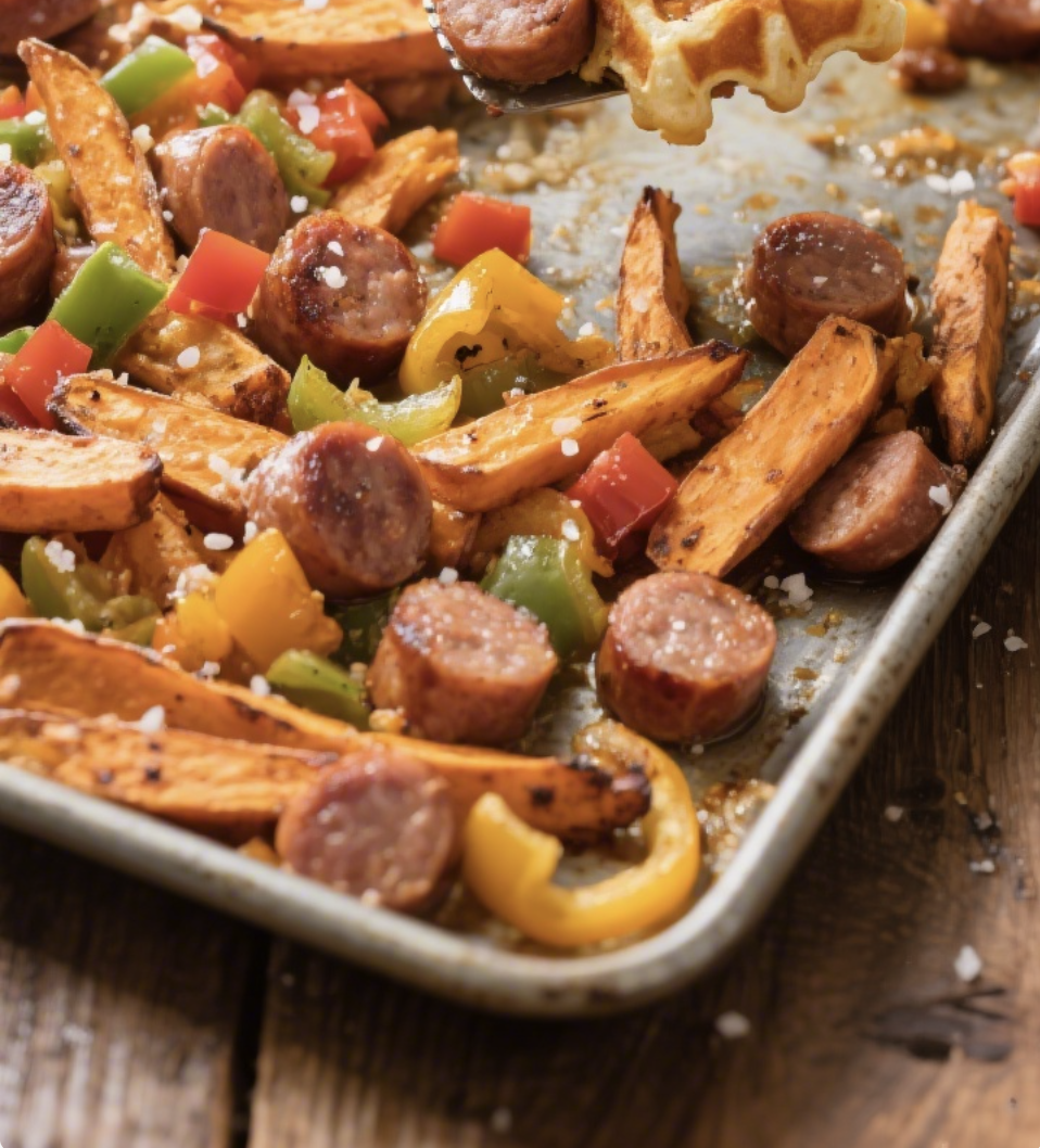 6. Sheet-Pan Sweet Potato Waffle Hash With Sausage Bites